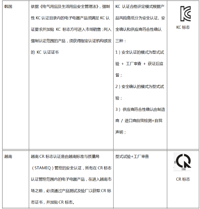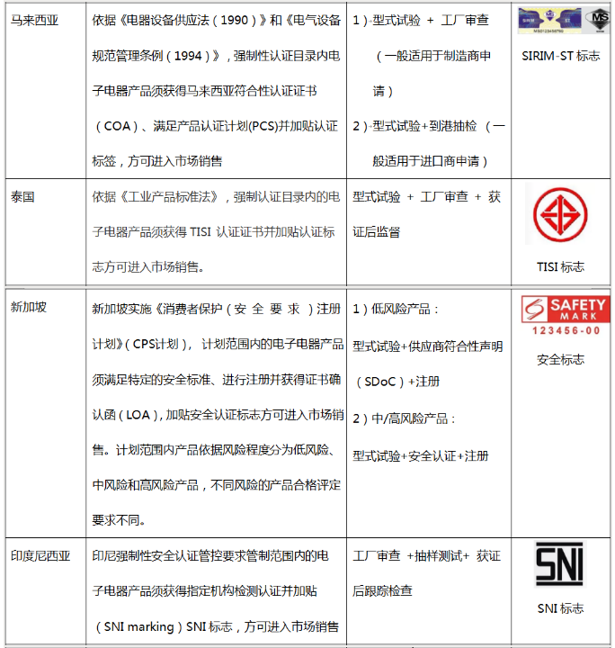 除了上述安全性能方面的強制性認證之外,RCEP部分國家對電子電器產(chǎn)品還實施了針對電磁兼容(EMC)、能效、通訊等方面的強制性要求。需要強調的是,各國的安全認證制度不僅限于電子電器產(chǎn)品,還涉及汽車及摩托車零部件、建材、食品、化學物質、玩具及兒童用品等日常生活用品以及商業(yè)或工業(yè)用產(chǎn)品。